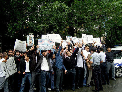 Сегодня утром активисты Общественного объединения "Национально-духовных ценностей" и ряда других структур, религиозной направленности предприняли попытку провести акцию протеста перед посольством Израиля в Баку в связи с отмечаемым 18 сентября в мусульманском мире "Днем Гудса (Иерусалима)". Мероприятие было пресечено полицией, оттеснившей, затем разогнавшей, манифестантов. Часть митинговавших задержана.