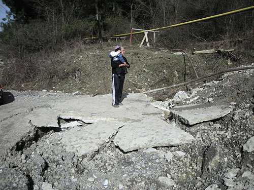 В результате оползня, который начался 22 февраля и продолжался сутки, земля ниже границы проезжей части обнажила бетонные сваи, на которых стояла дорога. Под напором движущейся массы из земли и воды повалились столбы линий электропередач, лопнули трубы газопровода.