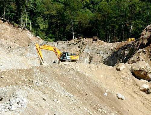 По словам рабочих, на склоне происходит расширение существующей дороги к селу Аибге, которое финансирует администрация Краснодарского края. Однако проект реконструкции дороги не проходил государственную экологическую экспертизу, и ее расширение не предусмотрено проектом освоения лесов Сочинского национального парка, заявляют экологи.