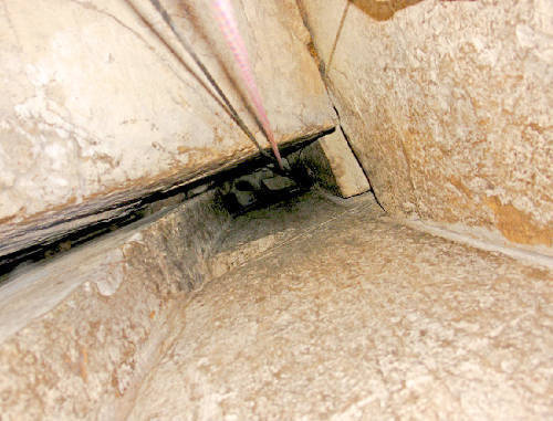 Найденную шахту Котляровы считают вентиляционной - об этом говорит ее узость и постоянный приток свежего воздуха. Геологи, в том числе и иностранные, склоняются к версии ее искусственного происхождения - на это указывают прямоугольность блоков, наличие раствора в швах между ними, отсутствие косых трещин, характерных для туфа, сообщает ИТАР-ТАСС.