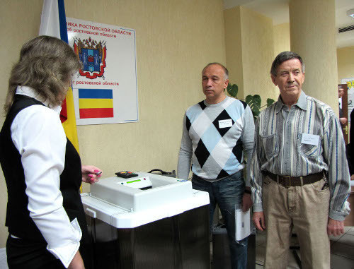 В Ростовской области, где открылись 2595 избирательных участков, на одном их самых современных «избирательном участке ХХI века» проголосовал мэр Ростова Михаил Чернышев.