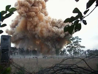 В третьем вагоне электропоезда найден корпус часового механизма. Установлено, что взрывное устройство идентично тем, которые применялись при диверсионных актах, совершенных в прошлом году на водонасосной станции Сухуми и на электроподстанции в городе Очамчира. Как сообщили в инженерной службе министерства обороны, удалось определить, что и во втором вагоне электропоезда сработала мина направленного действия "МОН-50". Мощность взрыва на очамчирском железнодорожном вокзале 500 граммов в тротиловом эквиваленте.