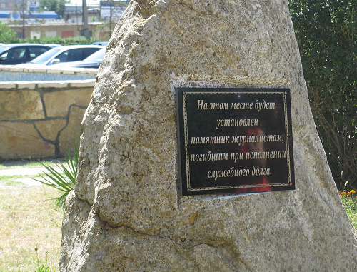Церемония закладки камня на месте будущего памятника журналистам, погибшим при исполнении своих обязанностей, состоялась перед газетно-журнальным комплексом в Махачкале. В церемонии приняли участие журналисты, представители органов власти Дагестана, участники проходящего в Махачкале форума СМИ.