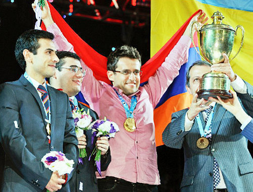 Также "Кавказский узел" ранее сообщал, что сборная Армении стала чемпионом мира по шахматам на VIII командном чемпионате мира, проходившем 15-26 июля 2011 года в китайском городе Нинбо. В состав команды входили сильнейшие шахматисты Армении - Левон Аронян, Владимир Акопян, Габриел Саркисян, Сергей Мовсисян и Роберт Ованнисян.