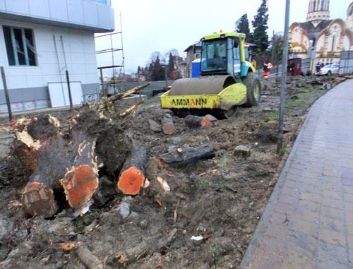 К 20 февраля деревья в районе храма на улице Виноградной были вырублены полностью. Как сообщили корреспонденту "Кавказского узла" местные жители, было уничтожено более полусотни редких деревьев.