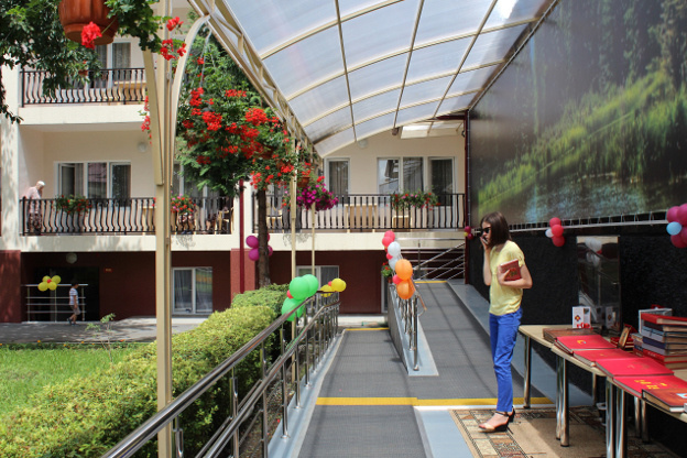 Двухэтажный спальный корпус рассчитан на 60 мест, он уже полностью укомплектован, рассказала Туганова корреспонденту "Кавказского узла". Первый этаж предназначен для маломобильных жителей дома престарелых, в корпусе имеется лифт, буфетная, в комнатах есть телевизор и холодильник, на территории "Заботы" установлены пандусы.