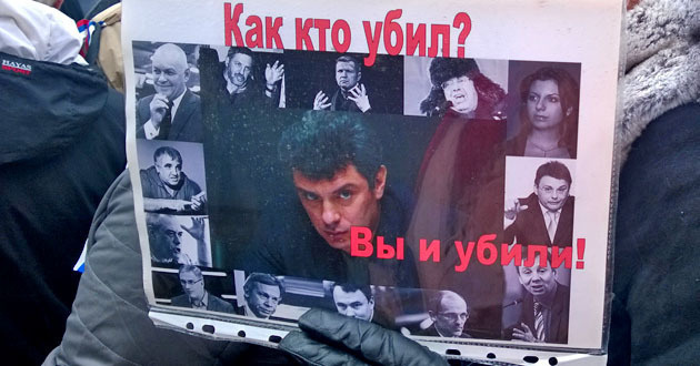 28 февраля. На убийство Немцова отреагировал президент России Владимир Путин. Он назвал преступление провокацией и определил его как заказное. Пресс-секретарь Путина Дмитрий Песков в эфире "Коммерсант FM" пояснил, что убийство накануне оппозиционного марша и событий на Украине выглядит провокацией против властей. Песков напомнил, что Немцов тесно контактировал с "разными людьми" в Киеве. В этот же день на сайте СКР версию о связи с Украиной, а также "исламским следом" озвучил представитель ведомства Владимир Маркин. Глава Чечни Рамзан Кадыров сводит версии убийства Немцова к "внешним врагам России".