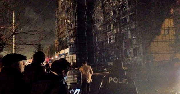 Пожар начался около 19.30 по местному времени (17.30 мск) на строительных лесах, поставленных для ремонта фасада здания по Зыхскому шоссе, 16 в Хатаинском районе азербайджанской столицы, рассказали корреспонденту "Кавказского узла" очевидцы.