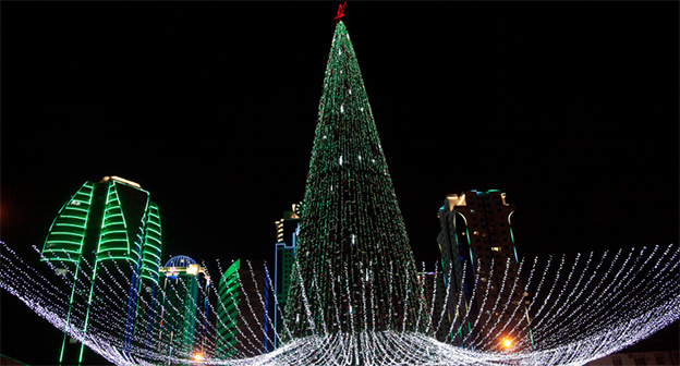 Главная республиканская елка с 2013 года устанавливается на территории парка отдыха вблизи комплекса высотных зданий "Грозный-Сити". До этого ее устанавливали на территории перед мечетью "Сердце Чечни" и зданием горадминистрации. Это вызывало недовольство у многих верующих, полагающих, что празднование Нового года и совершение религиозных обрядов фактически на одной площадке недопустимо.