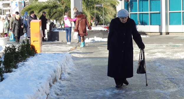 27 января в течение всего дня температура воздуха в Сочи не поднималась выше нуля градусов. Горожане пожаловались корреспонденту "Кавказского узла" на то, что власти не принимают никаких мер, чтобы обезопасить их движение по тротуарам и пешеходным дорожкам в дни заморозков, что приводит к повышенному травматизму.