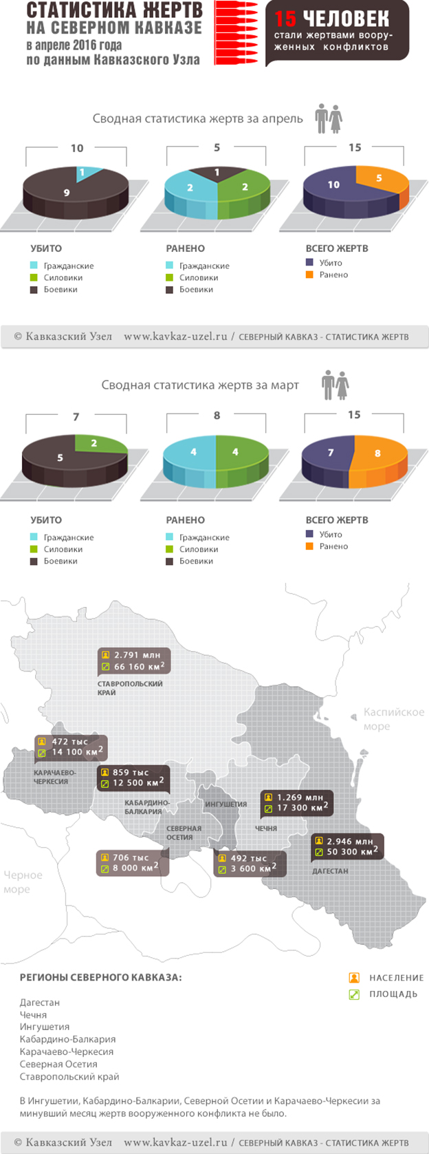 Инфографика. Статистика жертв на Северном Кавказе в апреле 2016 года по данным Кавказского узла