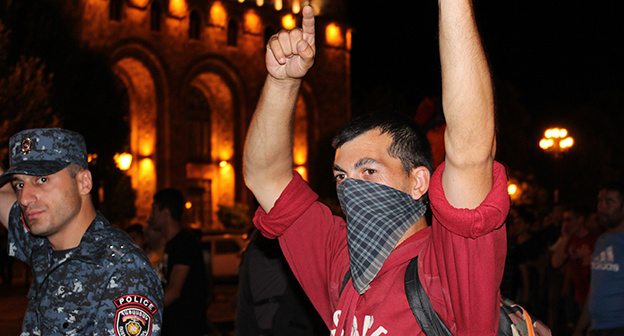"Кавказский узел" информировал, что с 17 июля вооруженные члены оппозиционного движения "Учредительный парламент" захватили здание полка полиции в Ереване. Они выдвинули требования об освобождении политзаключенных, включая своего лидера Жирайра Сефиляна, а также отставке Сержа Саргсяна и формировании временного правительства. В день захвата здания погиб офицер полиции, еще шестеро человек были ранены. К 23 июля мятежники освободили всех взятых в заложники полицейских. Сегодня ночью в результате перестрелки полицейских и мятежников были ранены пять человек, трое из них госпитализированы.