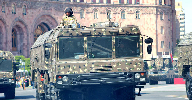 Сегодня на военном параде в Ереване, посвященном 25-летию независимости Армении, были продемонстрированы оперативно-тактические ракетные комплексы "Искандер" и реактивные системы залпового огня "Смерч", сообщает "Новости-Армения".