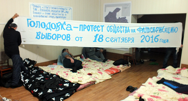Как сообщал "Кавказский узел", 28 сентября сторонники и активисты КПРФ объявили о начале голодовки в Буйнакске, потребовав пересмотра итогов голосования. Акция проходится в штабе городского отделения партии, расположенном в здании агрегатного завода. 2 октября число участников голодовки сократилось до 13 человек, поскольку двое активистов почувствовали себя плохо. По данным на вечер 16 октября голодовку продолжают восемь человек - Камиль Шахболатов, Магомедзакир Нурулвараев, Магомедтагир Ризванов, Ахмед Байболатов, Рашид Хабибулаев, Герей Садыков, Камиль Нурудинов, Мухтар Магомедов.