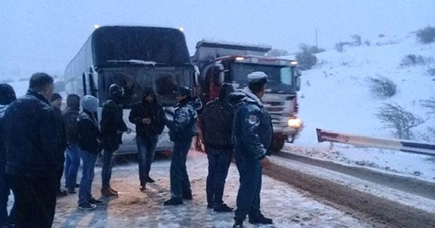 20 грузовых и 20 пассажирских автомобилей оказались заблокированными вчера, 16 марта, во время метели на участке трассы между Сараваном и Зангером.