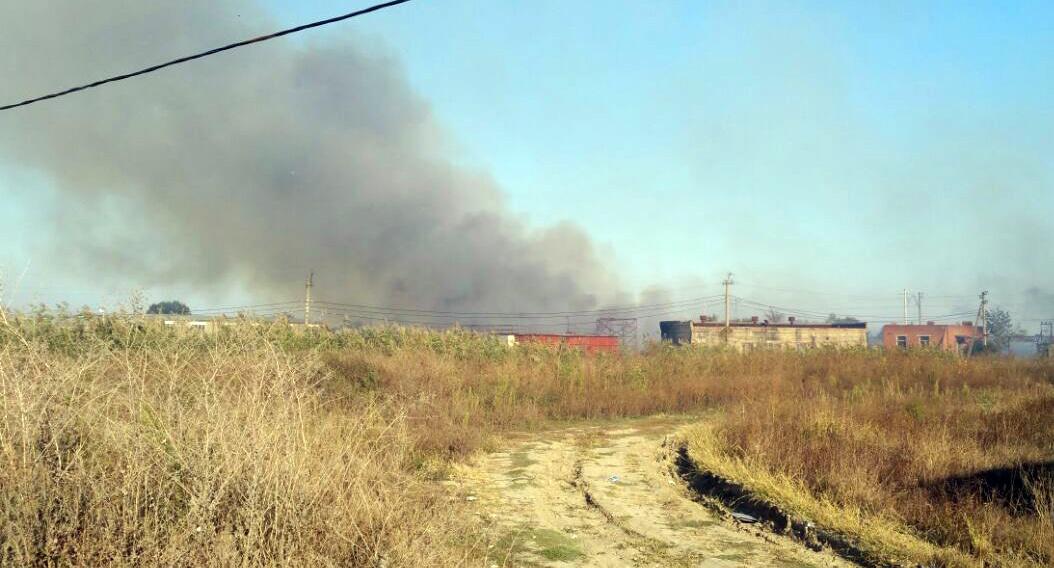 На видео, которое снял Заур Татлок видно, что за складом горит трава недалеко от железной дороги, по которой едет состав с грузом. Также Заур Татлок сообщил, что, сухая трава вперемежку с мусором на бывших рисовых полях горит в непосредственной близости от жилых домов, в доказательство прислал корреспонденту "Кавказского узла" фото- и видеоматериал.