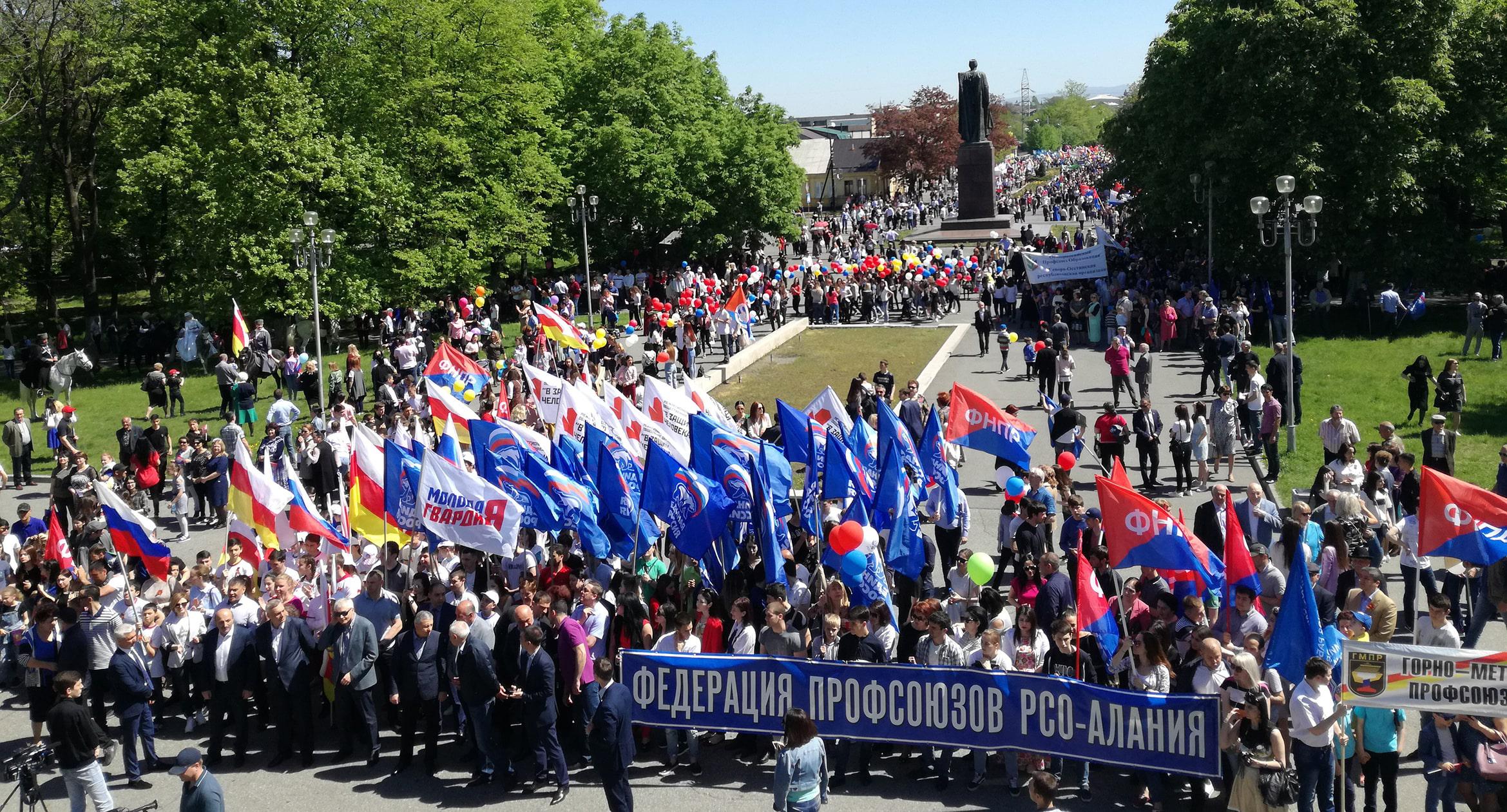 К первомайскому шествию и митингу Федерации профсоюзов во Владикавказе сегодня присоединились глава Северной Осетии Вячеслав Битаров и другие представители республиканской власти, а также активисты политических партий. Участники шествия собрались на улице Кирова у Горского государственного аграрного университета во Владикавказе. Колонна дошла до площади у Осетинского театра, где состоялся митинг. По оценке главы Федерации профсоюзов Северной Осетии Таймураза Касаева, в акции приняли участие более 10 тысяч человек, сообщил корреспондент "Кавказского узла".