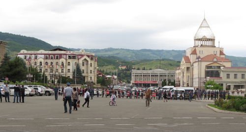 Как писал "Кавказский узел", сегодня вечером силовики оцепили площадь Возрождения в Степанакерте, чтобы не дать оппозиционной партии "Национальное возрождение" провести там митинг, и участники акции собрались в одном из городских парков.