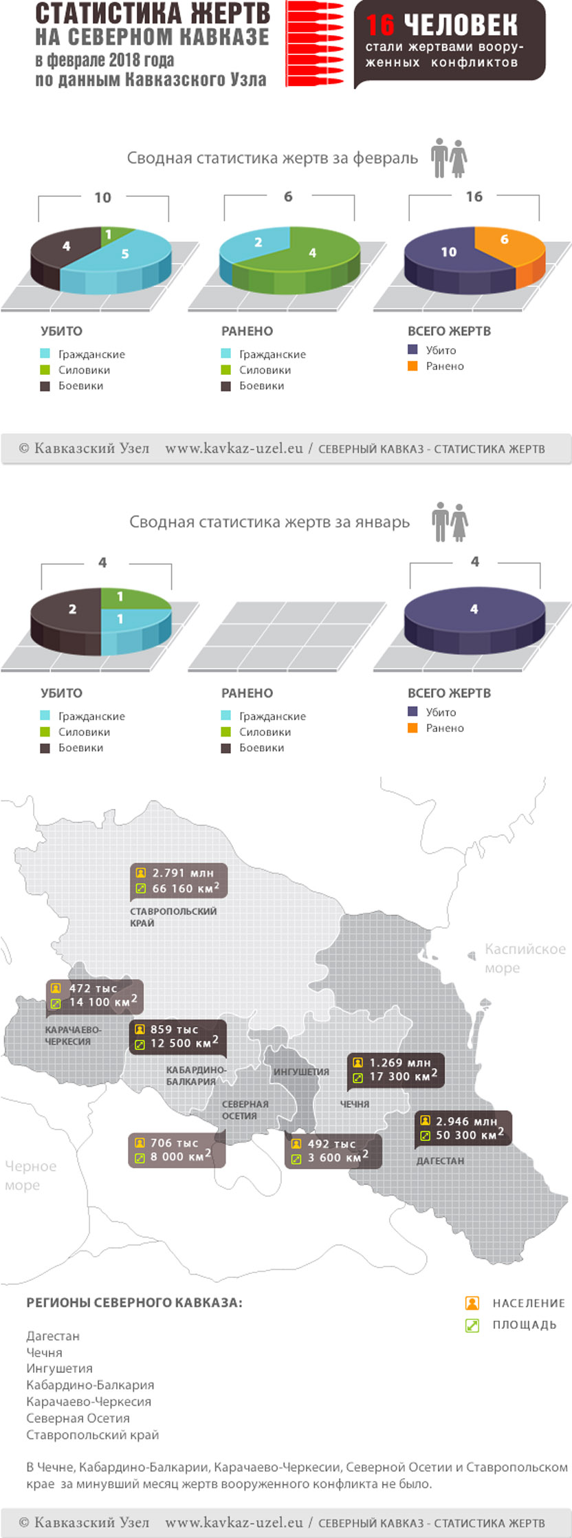 Инфографика. Статистика жертв на Северном Кавказе в феврале 2018 года по данным Кавказского Узла