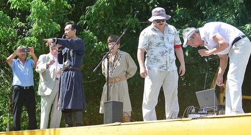Известный в республике исполнитель калмыцкого эпоса "Джангар" Окна Цаган Зам (Владимир Каруев) начал свое выступление с цитаты из стихотворения дагестанского поэта Расула Гамзатова: "И если завтра мой язык исчезнет, то я готов сегодня умереть". Он призвал собравшихся учить родной язык вне зависимости от того, "хочет этого Госдума или нет".