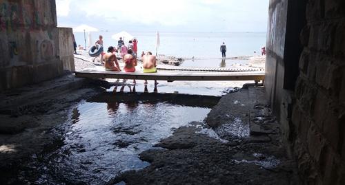 Корреспондент "Кавказского узла" прошла вдоль канализации, по которой ребенок был вынесен в море. На пути встречалась закрытая ливневая канализация.