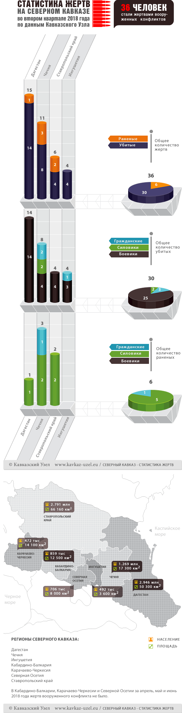 Инфографика. Статистика жертв на Северном Кавказе во втором квартале 2018 года по данным Кавказского Узла