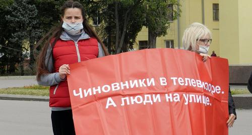 Участница акции протеста Алина Бессараб рассказала корреспонденту "Кавказского узла", что родители купили ей с сестрой квартиру в строящемся доме. "Мы студентки медуниверситета, – рассказала Алина. – Родители платят ипотеку примерно 15 тысяч и снимают нам квартиру за 11 тысяч рублей. Свое жилье мы ждем уже три года. Я на третьем курсе, сестра – на пятом. Я так понимаю, мы уедем с сестрой в другой город, смысла в этой квартире уже не будет. Строительство дома за последний год продвинулось на 6 процентов. Среди наших дольщиков есть много молодых семей, которые вынуждены жить с бабушками-дедушками".