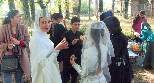 Праздничные мероприятия начались со скачек, в которых участвовали молодые люди из соседних с Арешперани сел. Дистанцию в один километр раньше остальных преодолел фермер Ника Турманидзе. "Моя семилетняя лошадь не скаковая - обычная рабочая. Приходится ее в хозяйстве использовать. Но я ее иногда тренирую, поэтому она обставила всех соперников на несколько корпусов", - рассказал корреспонденту "Кавказского узла" Ника Турманидзе.