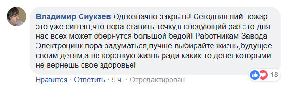 "Однозначно закрыть! Сегодняшний пожар - это уже сигнал, что пора ставить точку, в следующий раз это для нас всех может обернуться большой бедой!", - написал Владимир Сиукаев, комментируя пост Камболова.