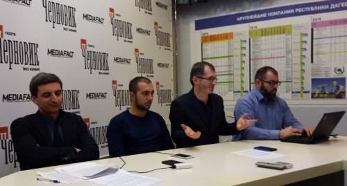 Члены дагестанской общественной комиссии по вопросам согласования границы с Чечней: заместитель главного редактора "Черновика" Магомед Магомедов, общественный деятель Абдулла Алиев, политический обозреватель "Нового дела" Шахрудин Халидов, журналист РИА "Дербент" Малик Бутаев - 20 февраля провели пресс-конференцию в редакции газеты "Черновик" в Махачкале. Они рассказали о тех сведениях, которыми обладает комиссия в вопросе уточнения границ между двумя республиками, передает корреспондент "Кавказского узла", присутствовавший на мероприятии.