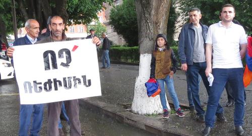 Жители Степанакерта Тигран Петросян и Артур Осипян вечером 20 мая вышли на центральную площадь города Возрождения с требованием отставки президента Бако Саакяна. Они выкрикивали лозунг "Нет режиму". Также участники акции протеста призвали к объединению с Арменией, сообщил корреспондент "Кавказского узла".