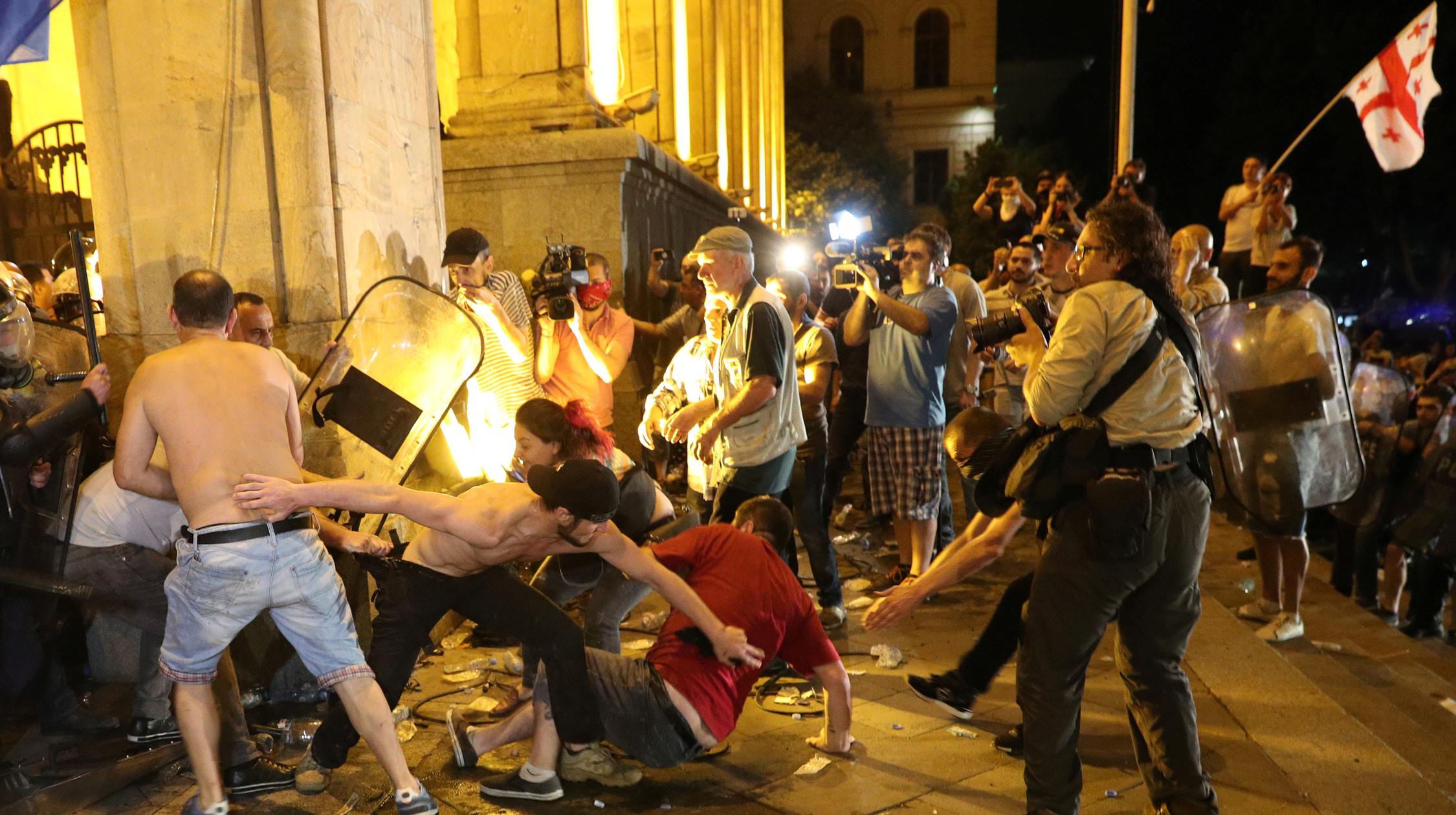 Протесты начались после того, как на заседании парламентской ассамблеи в здании парламента Грузии депутат Госдумы России Сергей Гаврилов сел в кресло спикера грузинского парламента. Протестующие уже добились отставки спикера парламента Грузии Ираклия Кобахидзе. Вечером 22 июня участники протестов озвучили еще три требования к властям: освобождение задержанных, отставка министра внутренних дел Георгия Гахарии и проведение парламентских выборов по пропорциональной системе.