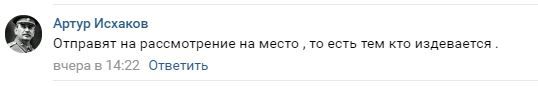 "(Жалобы отца Кациева) отправят на рассмотрение на место, то есть тем, кто издевается… В ООН, ЕСПЧ нужно писать - исключительно", - прокомментировал новость о жалобе отца Кациева в группе "Кавказского узла" в социальной сети "ВКонтакте" Артур Исхаков.