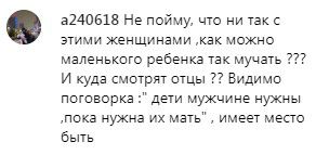 «Не пойму, что не так с этими женщинами, как можно маленького ребенка так мучать??? И куда смотрят отцы?? Видимо, поговорка "дети мужчине нужны, пока нужна их мать", имеет место быть», - рассуждает a240618.