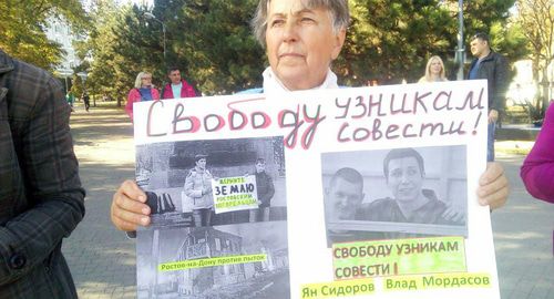 Как писал "Кавказский узел", 4 октября ростовский суд признал Владислава Мордасова и Яна Сидорова виновными в подготовке к организации массовых беспорядков в Ростове-на-Дону в ноябре 2017 года, они получили 6 лет и 7 месяцев и 6 лет и 6 месяцев колонии соответственно. Вячеслав Шашмин, также обвиненный по этому делу, признан виновным в покушении на участие в беспорядках, ему назначено 3 года условно. 26 октября пикеты в защиту Мордасова, Сидорова и Шашмина, а также волгоградцев Стаса Бабанова, Олега Костика, Михаила Турченко, Владислава Бондаренко провели волгоградские активистки Тома Гродникова и Галина Тихенко.