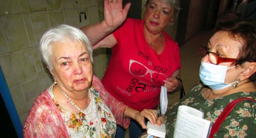 Пришедшие по повесткам люди подписывали совместное заявление дольщиков ЖК "Династия" и "Адмиралтейский" к генеральному прокурору России и в Центробанк России, в котором содержалась жалоба на бездействие властей и требования провести проверку Облстройнадзора, регионального арбитражного суда, региональных чиновников и конкурсного управляющего. Три пенсионерки разбирали таблетки из коробочки и запивали их водой. Одна из них, 76-летняя Любовь Шуб рассказала корреспонденту "Кавказского узла", что она жена офицера, работала учителем в школах. Сейчас их дети живут в США. В 2016 году супруги решили купить в ЖК "Династия" две квартиры: двухкомнатную и однокомнатную. Отдали за них 5 миллионов 123 тысячи рублей. Ради такой покупки женщина продала свою квартиру.
