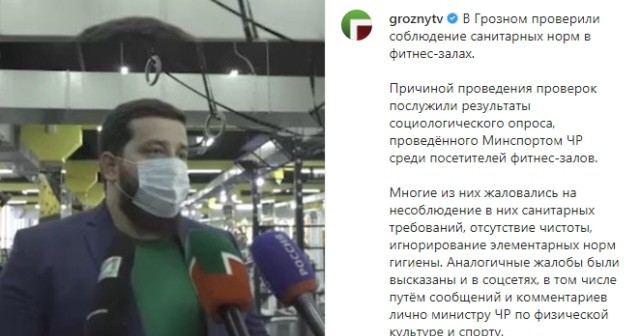 Видеоролик о проведении проверок фитнес-залов в Грозном и сообщение на эту тему разместил 30 июля и Instagram-паблик "Грозный ТВ", насчитывающий 856 тысяч подписчиков. Публикация по данным на 01.16 мск 1 августа получила 40 675 просмотров.