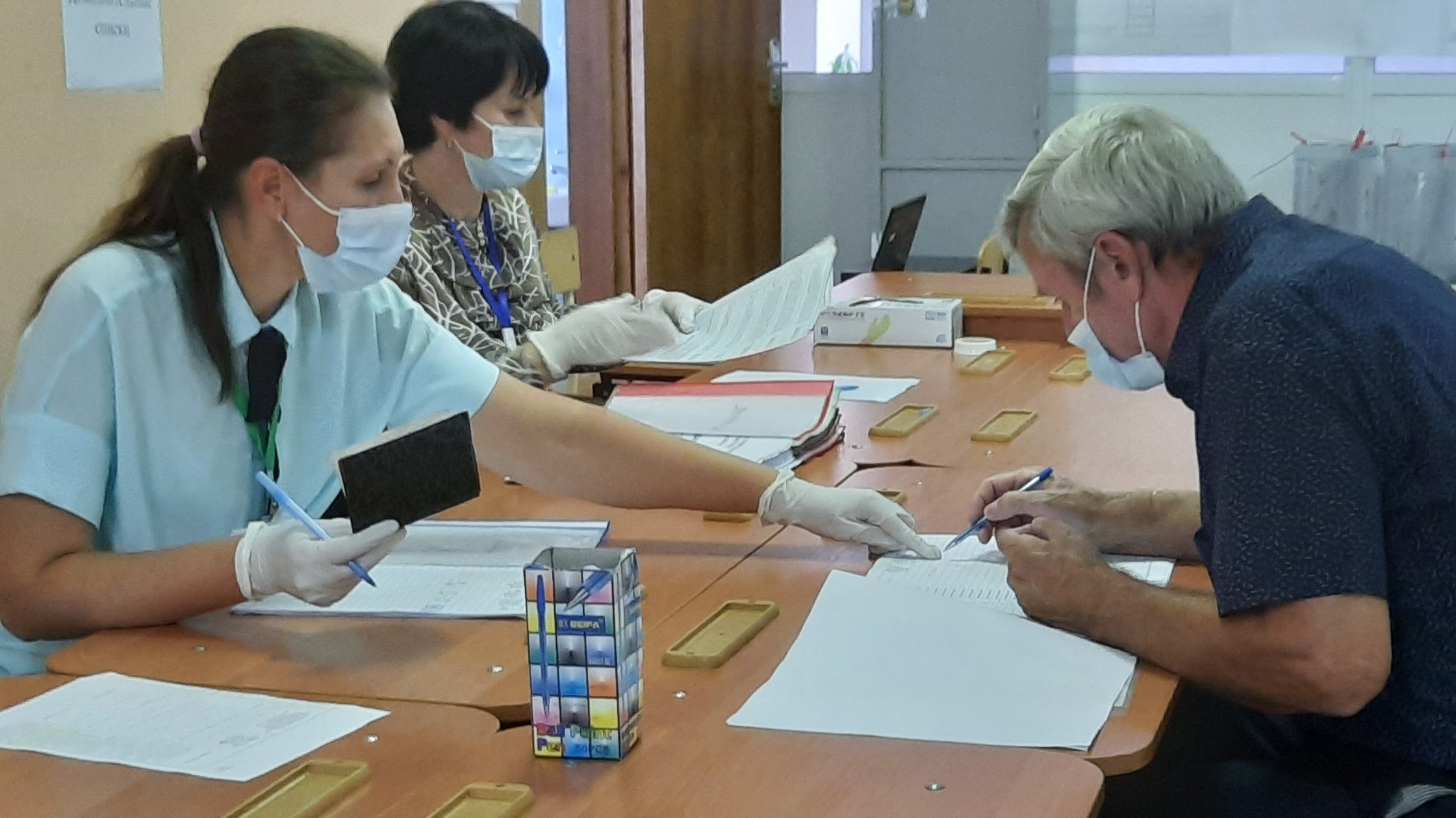 У комиссии на этом избирательном участке есть отдельный список избирателей, которые прикрепились к участку для голосования на губернаторских выборах через госуслуги, сообщил корреспонденту "Кавказского узла" Дмитрий Ушаков, член комиссии с правом совещательного голоса от одного из кандидатов в губернаторы. В этом списке на момент голосования было 25 человек. По словам Ушакова, при нем в помещении для голосования по этому списку проголосовал один человек.