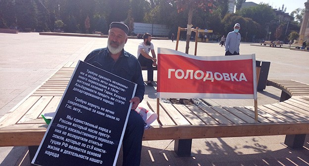 Как писал "Кавказский узел", Бектемир Салихов 18 сентября вышел на одиночный пикет в Махачкале с требованием возвращения исторических земель кумыкам и встречи с главой Дагестана Владимиром Васильевым. Полицейские доставили его в отделение, обвинив в мелком хулиганстве, поскольку плакаты были прикреплены к постаменту памятника Ленину. 21 сентября Салихов вновь вышел в Махачкале на пикет, который власти оставили без реакции. Сегодня, выйдя на пикет, Салихов объявил голодовку. Силовики увезли активиста в райотдел полиции, так как у него не оказалось с собой паспорта.