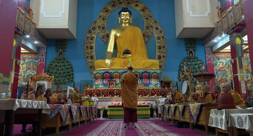 Праздничные мероприятия в Центральном хуруле 10 декабря продлились с 09.00 до 17.00 мск. Помимо онлайн-молебна "Тысяча подношений ламе Цонкапе", верующим были показаны фильмы на буддийскую тематику. Кроме того, Шаджин лама (верховный лама) Калмыкии Тэло Тулку Ринпоче выступил с онлайн-наставлением "Ламрим – постепенный путь к пробуждению". Трансляции Центрального хурула на Youtube -канале и в Instagram к 18.30 мск посмотрели более 7,5 тысячи верующих, сообщил корреспонденту "Кавказского узла" пресс-секретарь "Золотой обители Будды Шакьямуни" Цецен Надбитов.
