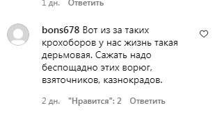 "Вот из за таких крохоборов у нас жизнь такая [плохая]. Сажать надо беспощадно этих взяточников, казнокрадов", – возмутился пользователь bons678.