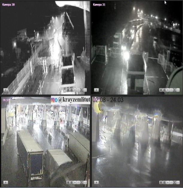Согласно данным веб-камер на КПП "Верхний Ларс" на 02.40 мск сегодня, 24 марта, на въезде в Грузию из России и на выезде из России по направлению в Грузию наблюдаются скопления грузовых автомобилей. Легковые автомобили на КПП не видны. Изображения с веб-камер контрольно-пропускного пункта на сайте "Край земли" обновляются каждые пять минут.