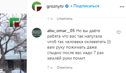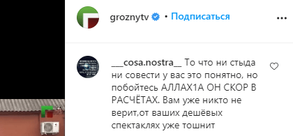 "То, что ни стыда, ни совести у вас, это понятно, но побойтесь Аллаха, он скор в расчетах. Вам уже никто не верит, от ваших дешёвых спектаклей уже тошнит", - написал пользователь ___cosa.nostra__.