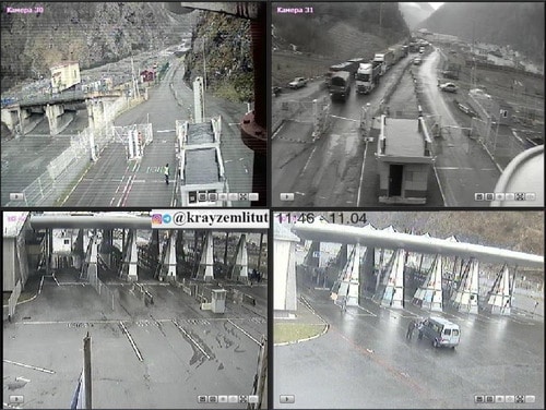 Согласно данным с веб-камер на КПП "Верхний Ларс" на 01.50 мск 13 апреля, на въезде в Россию из Грузии дорога свободна. На выезде из России в Грузию наблюдается очередь из фур и легковых машин, конца которой не видно из-за поворота дороги. На самом КПП также стоит одна легковая машина. Изображения с веб-камер контрольно-пропускного пункта на сайте "Край земли" обновляются каждые пять минут.