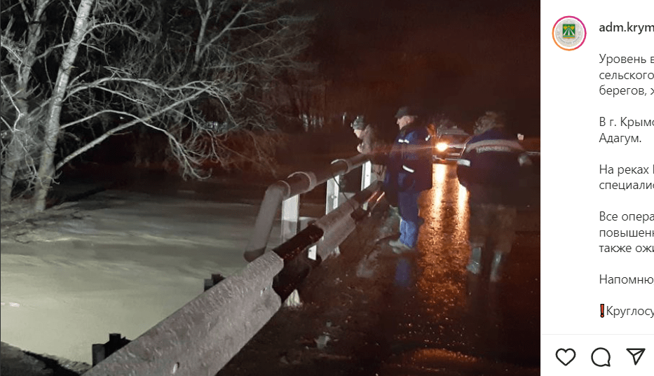 Как писал "Кавказский узел", 25 декабря в Анапе, Новороссийске и Крымском районе из-за обильных осадков вышли из берегов реки. МЧС сообщило об угрозе подтопления жилых домов. Власти Крымского района призвали жителей собрать все необходимое и в любой момент быть готовыми к возможной эвакуации. После подъема воды в река Адагум были подтоплены девять приусадебных участков в СНТ "Железнодорожник", спасатели эвакуировали 18 человек. Из-за подъема уровня воды в реке Абин глава Крымского района призвал жителей Мерчанского сельского поселения эвакуироваться в здание сельской школы.