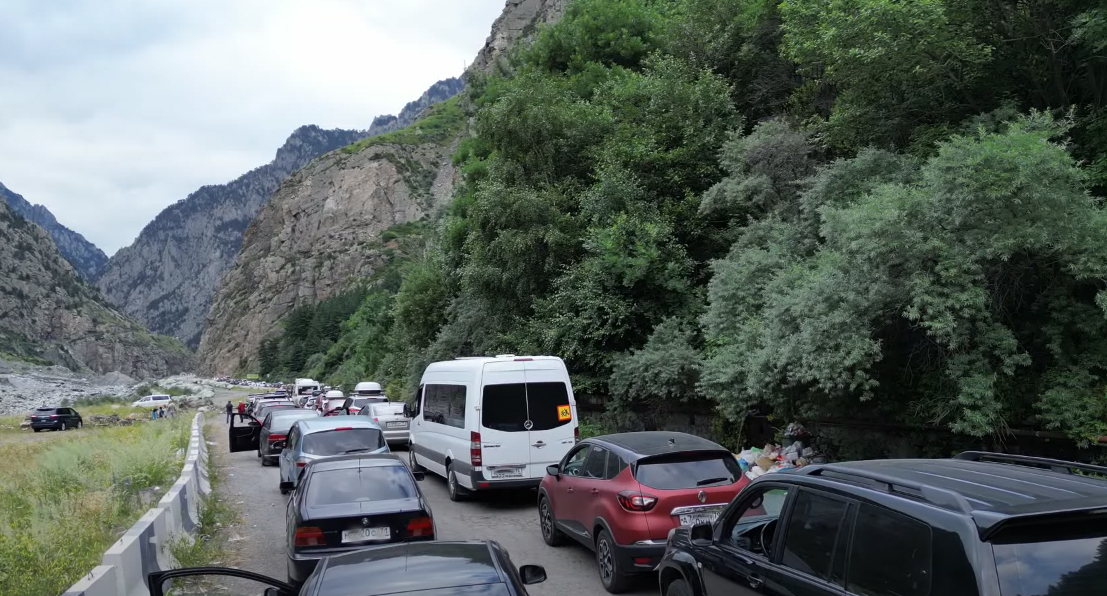 На границе России и Грузии образовались пробки, сообщило со ссылкой на очевидцев вечером 21 августа "Эхо Кавказа"*. Издание опубликовало видео, на кадрах которого видна огромная пробка из легковых машин на КПП "Верхний Ларс". "Люди уже на встречку повылазили. Кто без очереди, кто стоял уже раньше. Проехать невозможно, граница стала", - говорит голос за кадром.