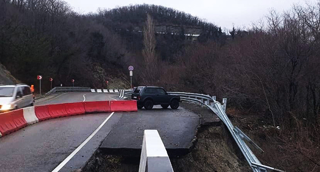 Движение частично затруднено. Специалисты ФКУ "Черноморье" выехали на место для оценки ситуации и принятия первоочередных мер, пишет "Интерфакс" со ссылкой на пресс-службу ФКУ Упрдор "Черноморье".