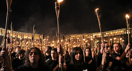 Как сообщал "Кавказский узел", 23 апреля участники ежегодного факельного шествия, приуроченного к 108-летию геноцида армян в Османской империи, сожгли в центре Еревана флаги Турции и Азербайджана. Памятные мероприятия по жертвам геноцида армян проходят в Армении и Нагорном Карабахе 23 апреля. Мемориальные мероприятия также проводятся в армянских диаспорах в разных странах мира.