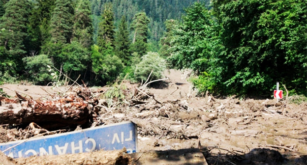 Как писал "Кавказский узел", 3 августа оползень сошел рядом с гостиницей Sunset Shove на курорте Шови, были разрушены дорога и мост, два человека погибли.