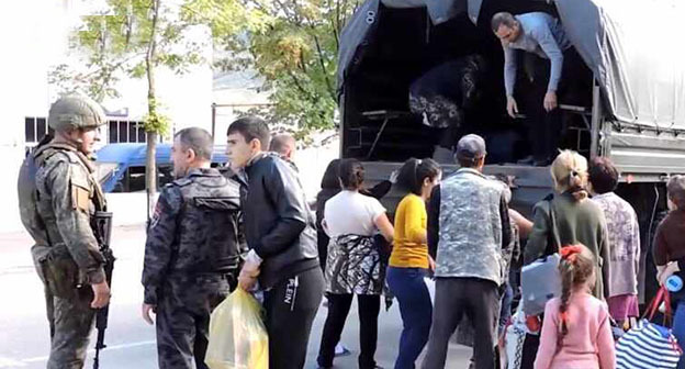 Как писал "Кавказский узел", эвакуированные жители сел Нагорного Карабаха собрались рядом с базой российских миротворцев. Многие из них не получили ни еды, ни питья. При этом в Степанакерт продолжают прибывать жители сел в надежде эвакуироваться.